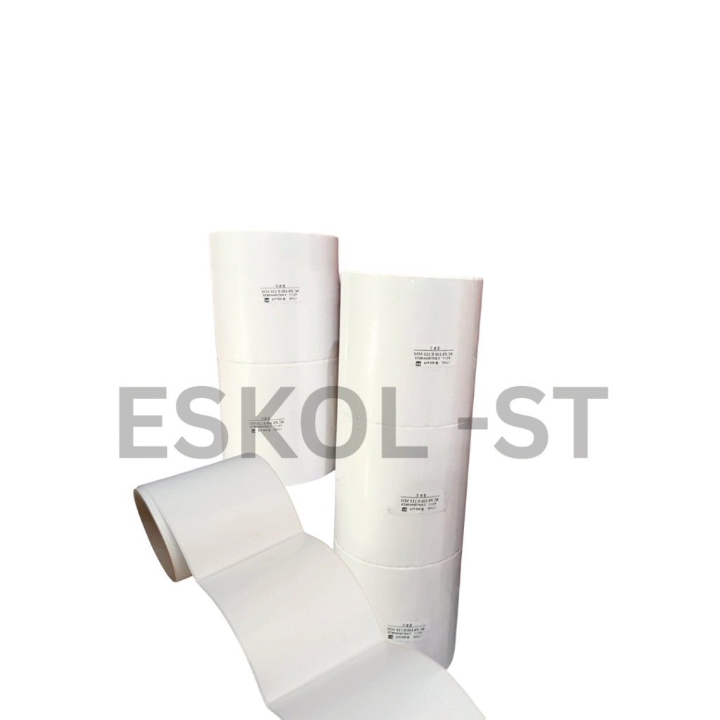 Lebar 110 mm, panjang 300 m (4,33″ × 984′); coated side out untuk pemasangan mudah